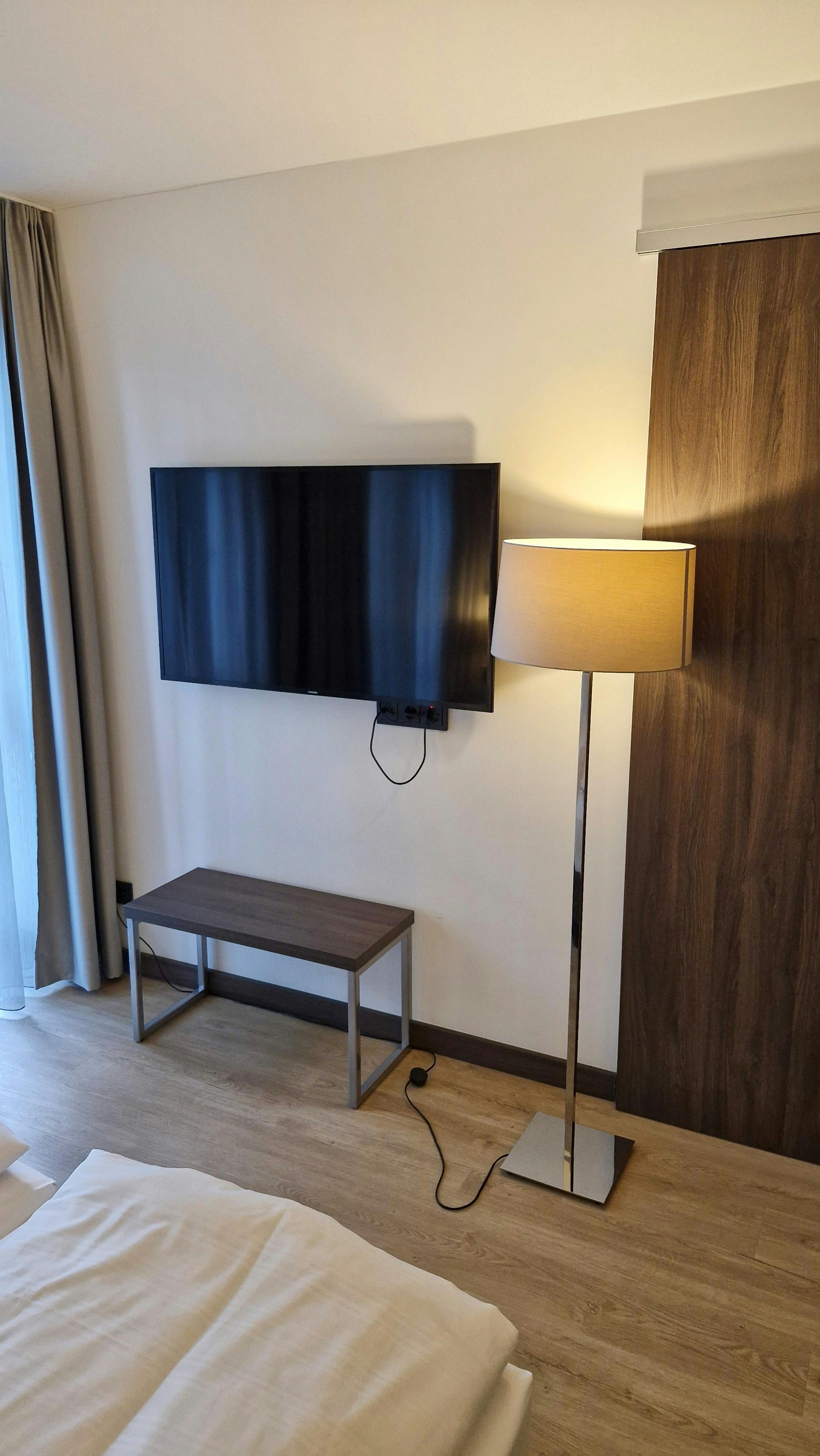 With a living space of approx. 40 m², our Superior Suite offers you a spacious bedroom with a wardrobe and TV for your comfort. The separate living room has a dining area and a comfortable sofa bed with an additional TV. There is also a kitchenette with a stove, refrigerator, microwave, and kettle, perfect for preparing small meals. Your modern bathroom has a toilet, shower, and complimentary toiletries.